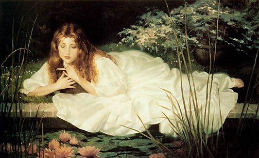 Elle habitait une maison au milieu du jardin, mangée par une vigne fraîche qui donnait de savoureux raisins. Chaque jour, elle allait nourrir le poisson de miettes de pain, et restait assise un long moment au bord du bassin, jouant dans l’eau avec une fine baguette de bois qu’elle portait toujours avec elle. Puis elle faisait le tour du jardin, goûtait un fruit mûr, arrachait quelque mauvaise herbe troublant la croissance des fleurs, humait les parfums, suaves ou âcres, des multiples herbes odorantes qui y poussaient.