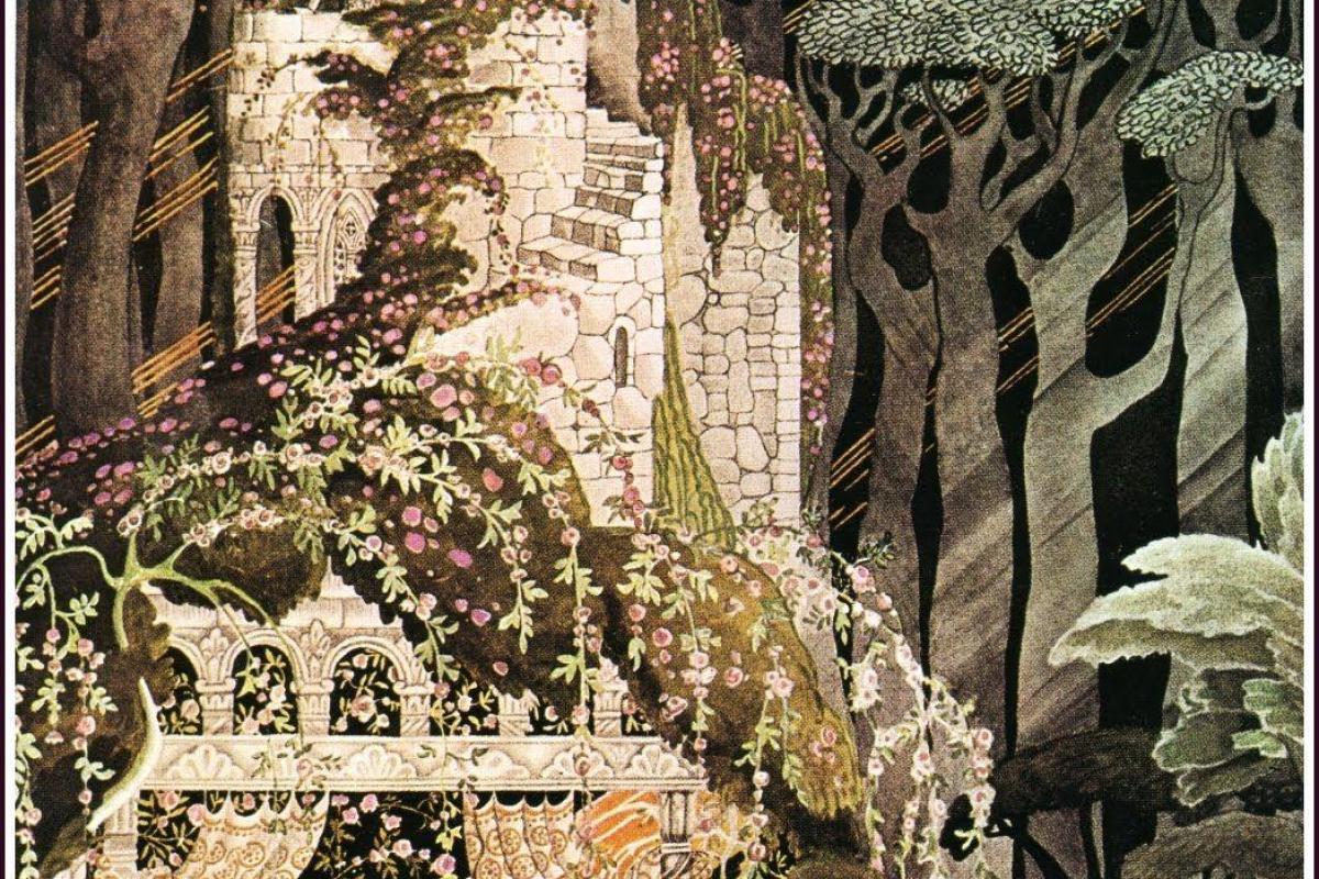 Autour du château, une haie d’aubépines commença à croître qui, chaque année, devenant de plus en plus haute et entourant tout le château, si bien que l’on ne pouvait plus rien en voir, pas même l’oriflamme qui flottait sur le toit.