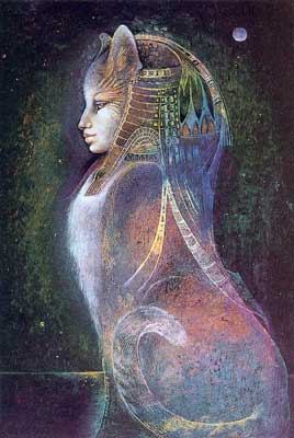 À partir de la 22ème dynastie, la déesse-chatte Bastet apparut en tant que fille d’Isis et d’Osiris et supplanta toutes les autres déesses. La chatte-Bastet symbolisait la créativité et la conscience.