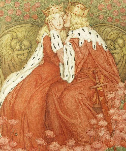 Le prince et la princesse s’embrassèrent avec joie et elle lui dit: "À partir de maintenant, vous êtes mon époux. J’avais été maudite par la Mère de Dieu jusqu’à ce qu’un fils d’empereur me coupe la tête."