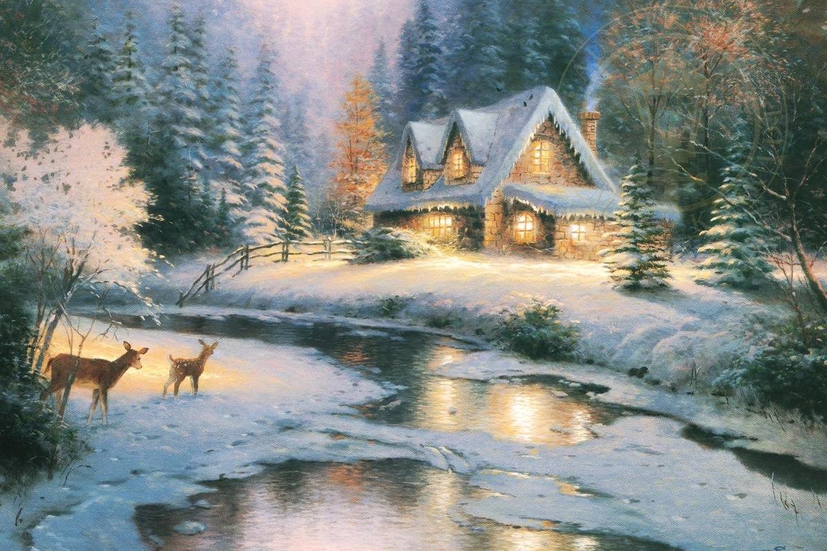 C’était un plaisir de voir la petite maison si proprette de leur mère. Roserouge s’en occupait l’été et ne manquait pas d’apporter à sa mère chaque jour un bouquet de fleurs fraîches contenant une rose de chaque rosier. En hiver, c’était Neigeblanche qui se levait pour allumer le feu et pendre le chaudron à la crémaillère; c’était un chaudron de cuivre jaune qui brillait comme de l’or tellement il était bien récuré et poli. Et le soir quand il neigeait, la mère disait: "Va, Neigeblanche, pousser le loquet." Elles s’installaient près du feu, la mère chaussait ses lunettes et lisait à haute voix dans un gros livre, tandis que les fillettes filaient la quenouille tout en l’écoutant. Un agnelet se chauffait, couché à leurs pieds, et derrière elles une colombe dormait sur un perchoir, la tête cachée sous l’aile.