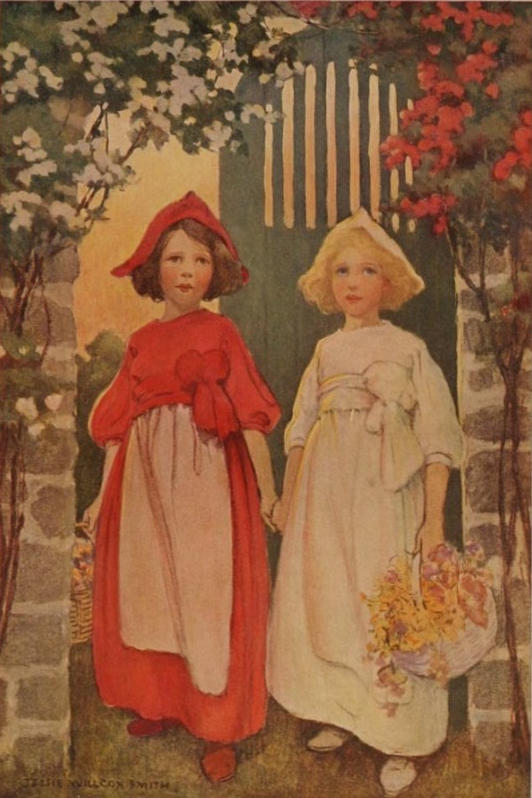 C’étaient les petites filles les plus sages du monde, obéissantes et actives, pieuses et au bon cœur. À l’exception de Neigeblanche, qui était encore plus douce et plus calme que Roserouge. Roserouge aimait courir les prés ou les champs pour y cueillir des fleurs ou attraper des papillons. Neigeblanche préférait rester près de sa mère, l’aidant au ménage ou lui faisant la lecture.