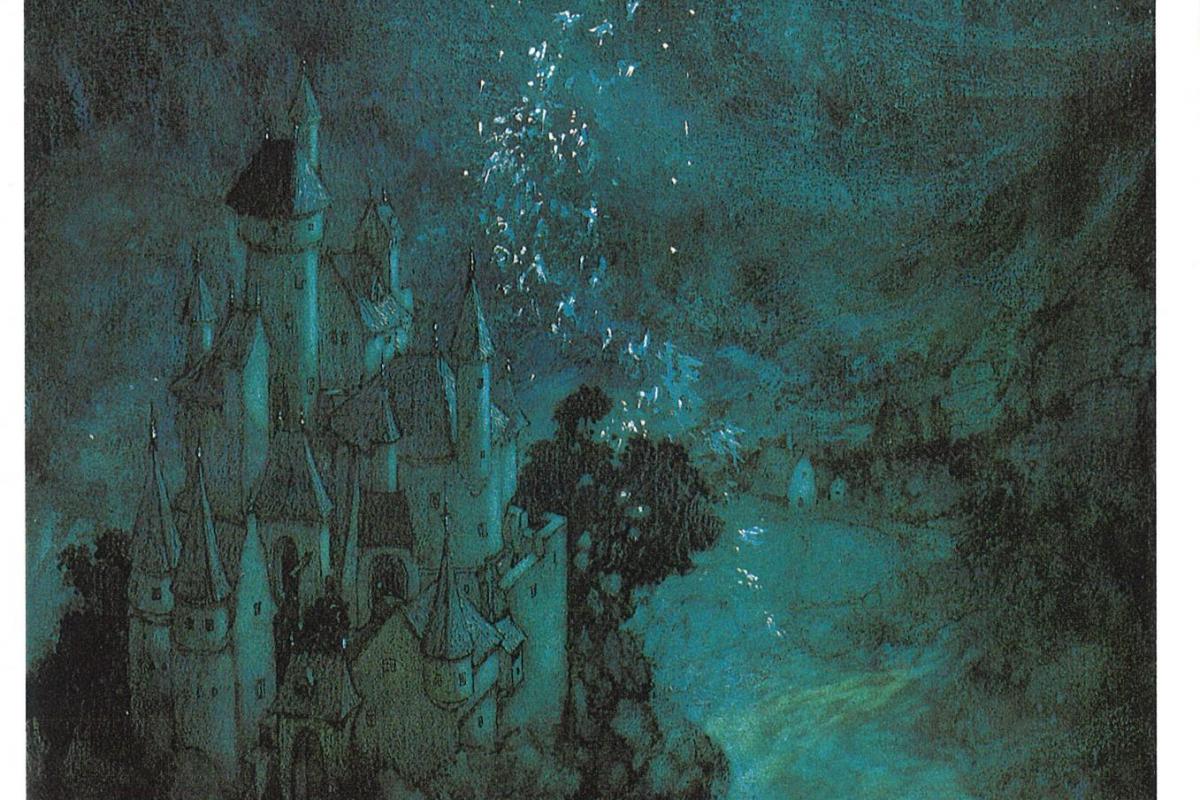 L’homme l’emmena très loin en ramant de ses rames de cuivre qui, humides, scintillaient dans l’air. Ils arrivèrent à un village: à l’entrée se trouvait une grande maison et derrière celle-ci, une autre plus petite. L’homme dit d’une voix sévère: "Rentre dans la grande maison, mais jamais dans la petite."