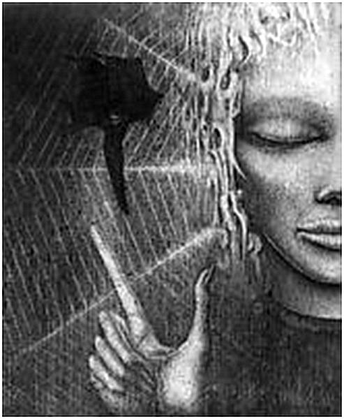 Malheureusement, la jeune fille est tiraillée entre deux opposés: le dieu lunaire d’humeur changeante, négatif et destructeur, et la femme qui l’aide - c'est-à-dire le masculin et le féminin. Il semble qu'elle soit impuissante à distinguer ce qui est bon ou mauvais pour elle. La fonction SENTIMENT - la fonction de discrimination entre le bien et le mal, entre autres - est atteinte. Ce qui est grave pour une femme.