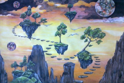 Après avoir décidé de monter au ciel, la jeune fille passe par un trou, un vide. Ce vide permet le passage d’un monde à l’autre.