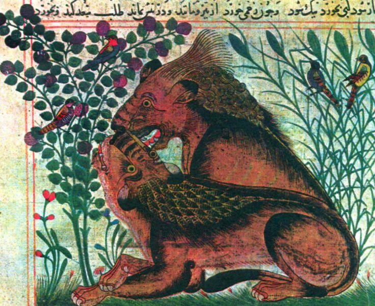 Arrivé dans la plaine, des scorpions géants, avec des serres d’oiseaux et des yeux étincelants, se précipitèrent sur lui. Mais le vieillard apparut à nouveau et lui ordonna de jeter son talisman à terre. Elle prit encore une fois les quatre couleurs et quand elle devint rouge, les scorpions s’attaquèrent l’un l’autre jusqu’à ce que mort s’ensuive.