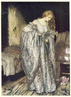 Elle saisit son bonnet et le retira: alors ses cheveux d’or se déroulèrent sur ses épaules et c’en était superbe à voir. Comme il voulait s’enfuir, elle le retint par le bras et lui donna une poignée de ducats. Il s’en alla avec l’argent, mais n’en fit aucun cas et l’apporta au jardinier pour ses enfants.