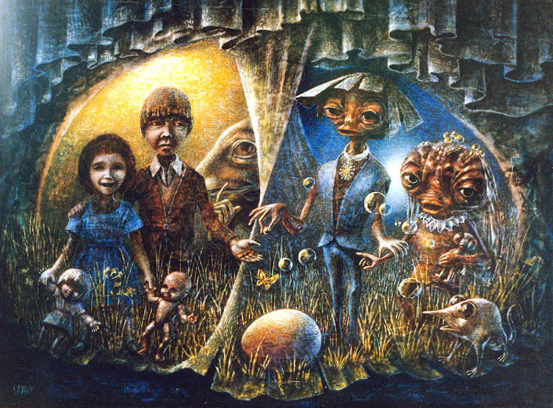 C’étaient de très beaux enfants, mais chacun avait un petit quelque chose qui le distinguait: l’un avait les oreilles trop petites, l’autre une oreille plus haute que la seconde, le troisième un œil trop haut, le quatrième naquit avec une griffe de lion sur la joue, le cinquième n’eut qu’un œil, le sixième une grande dent qui sortait de la bouche. Bref, chacun portait sa petite marque de féerie sauvage…