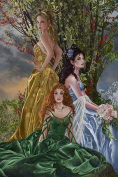 Présine accouche de trois filles, des "triplées", une "triade" de fées. Les fées vont toujours par trois, notamment parce qu’elles représentent le cycle complet de la vie.