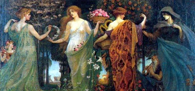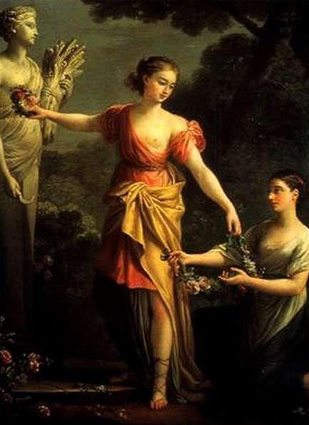 Déméter avait une fille unique, Perséphone, vierge du printemps et du renouveau. Elle l’élevait loin de tous, pour la garder belle et pure, et la protéger des convoitises. Et elle voyageait avec elle dans le monde, mère et fille ensemble, déesses bienveillantes et généreuses, prodiguant l’abondance et la fécondité là où elles passaient.