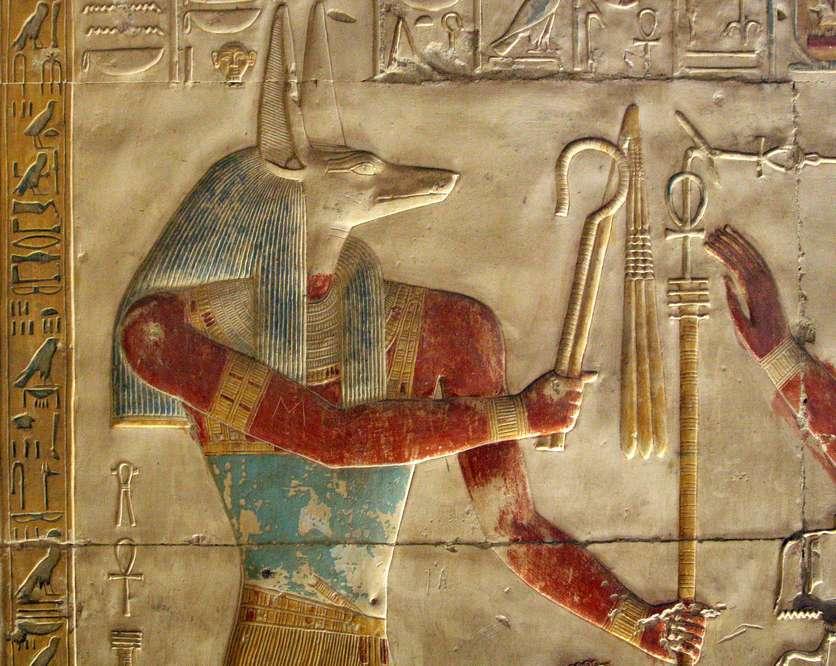 Anubis a une tête de chacal: le chacal se nourrit des cadavres. Mais le vrai chacal n’existe pas en Égypte. Il s’agit d’un chien errant ou d’un loup.